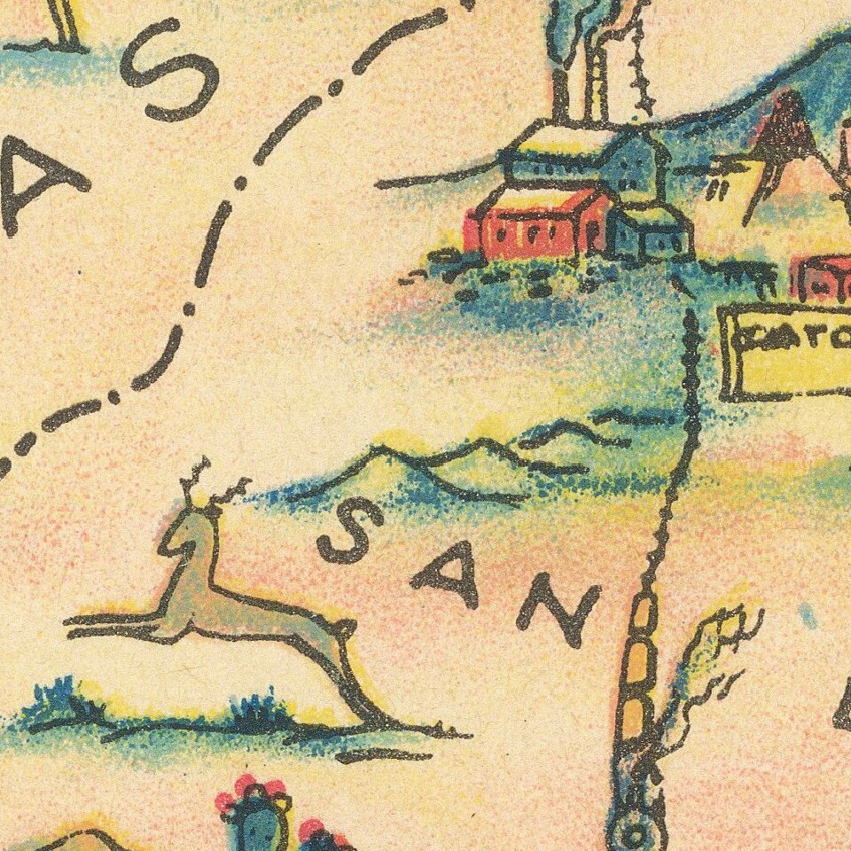 The map is one of the liveliest and most interesting maps of Mexico published in this pictographic style, with vivid colors and fantastic images.