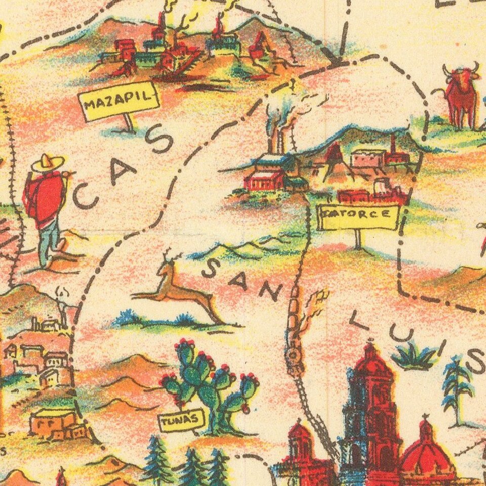 The map is one of the liveliest and most interesting maps of Mexico published in this pictographic style, with vivid colors and fantastic images.