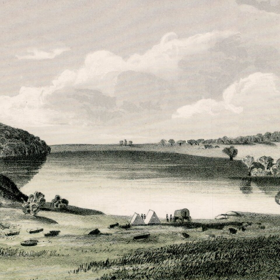 Striking view of Pike Lake, from the Pacific Railroad Surveys.