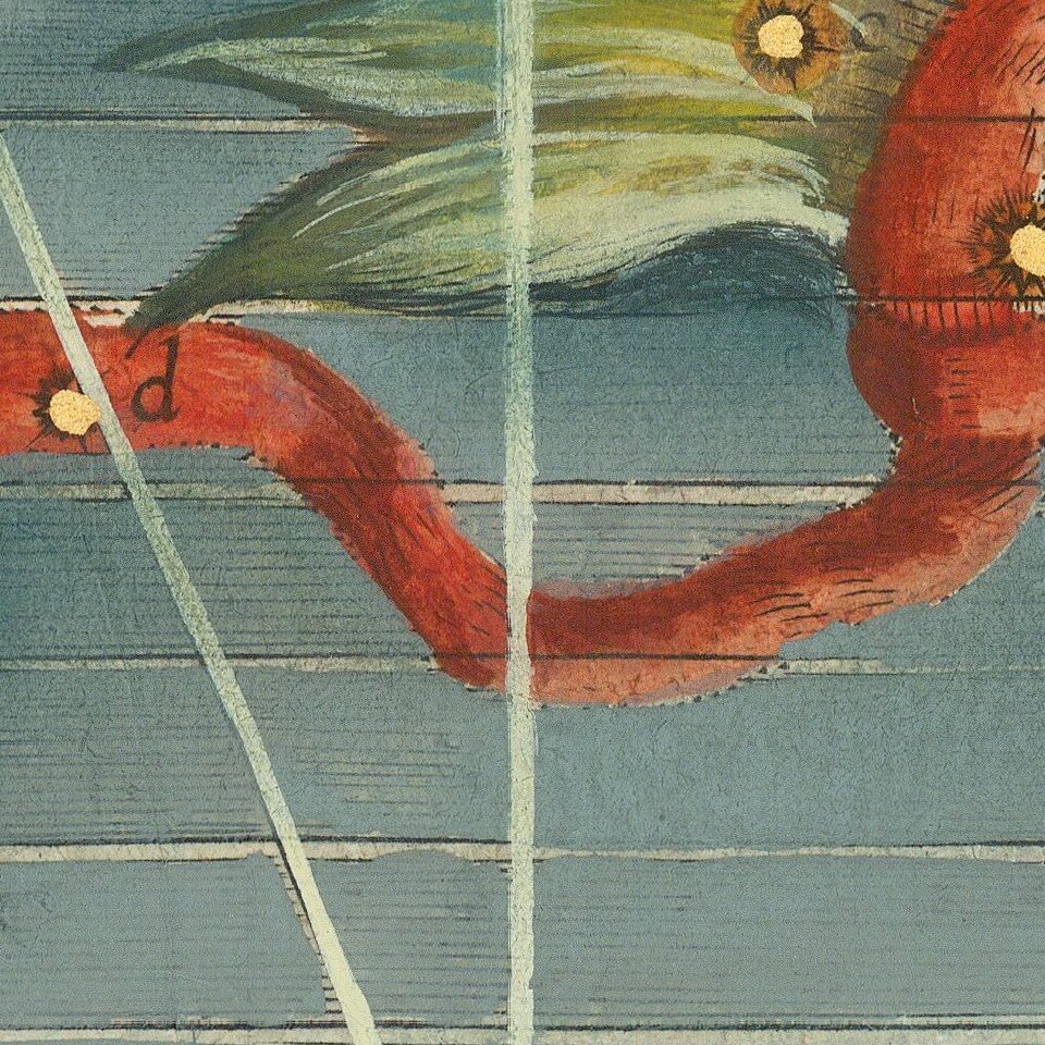 Striking full color example of Bayer's celestial chart of Pisces, with the stars heightened in gold.