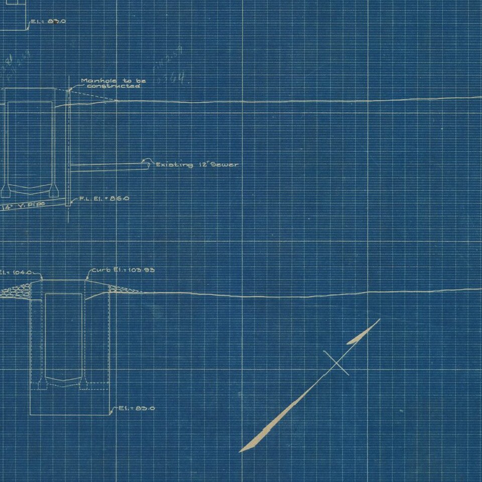 Ephemeral blueprint plan of engineering work on Mission Street in Santa Barbara, California.