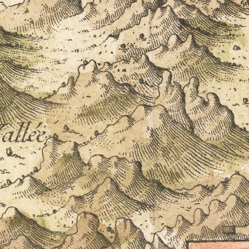 Bellin's map Plan de l'Isle Ste Helene is largely is derived from the maps of Seller and Moll. The outline of the island essentially is that portrayed by Seller, with, for example, the very pronounced 'finger' of Pointe du Nord (Sugerlofe Point of Seller and Moll). Interior features of the island, such as Vallée de Tabac, Vallée d'Orangers, and Jardins de Limons are taken directly from Seller and Moll, as are most of the coastal names.