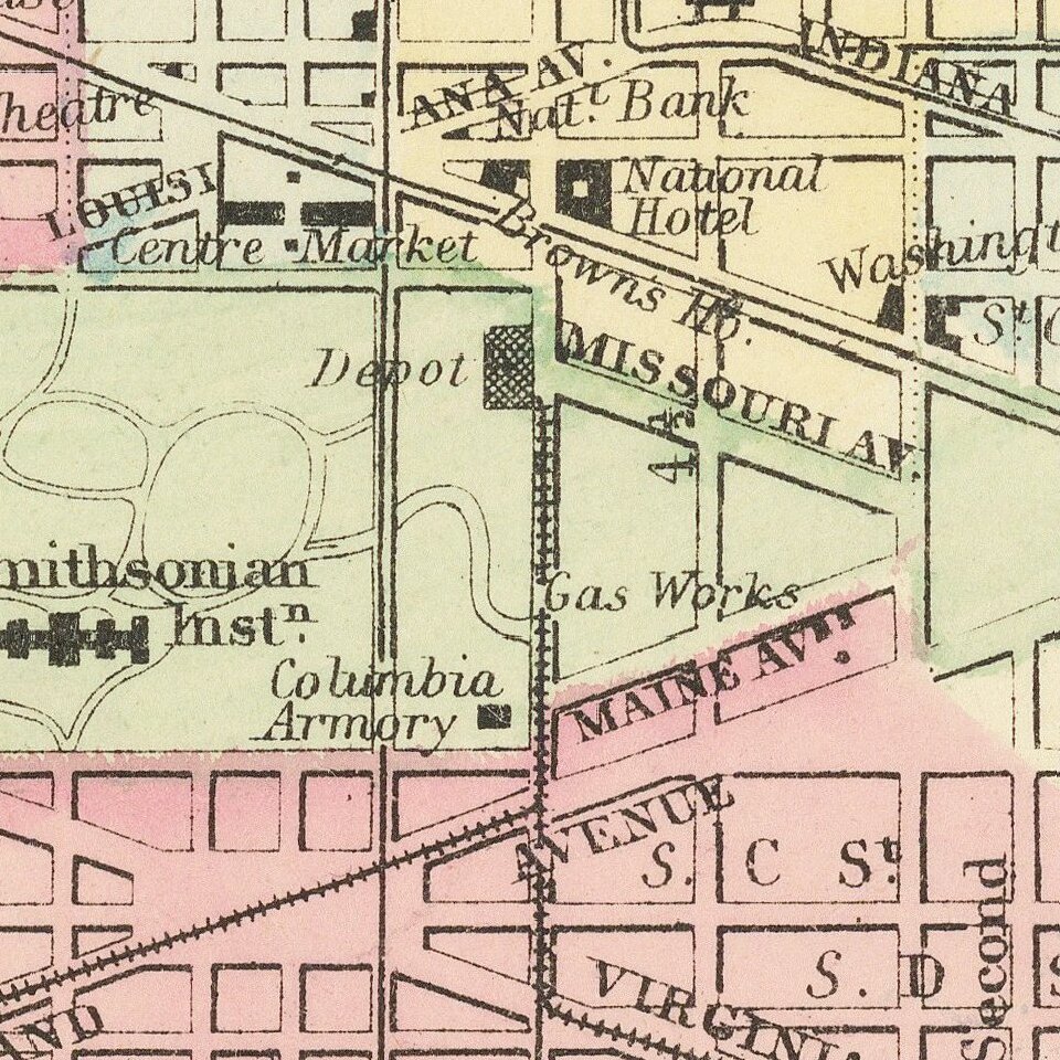 A nice map of Washington DC, one of the best commercial atlas maps of the period. Decorative floral border. SA Mitchell Jr. acquired his father's former business from DeSilver in 1860 and relaunched a very successful atlas publishing business which survived another 20+ years, before licensing and selling off much of his inventory and rights.