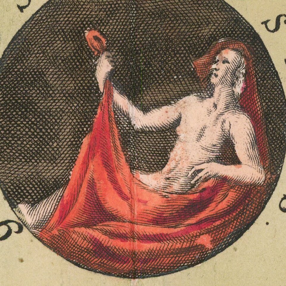 This decorative celestial chart is based on the theories of the 3rd century Greek astronomer, Aratus, in which the Earth is at the center of the celestial universe with the Sun and Moon orbiting around it. The orbits of the planets are shown with the twelve signs of the zodiac and their human representations depicted around the edge of the sphere, with additional illustrations of principal Greek gods and goddesses. Aratus's most famous work was his hexameter poem Phaenomena. The first part of the poem is a verse setting of a lost work of the same name by Eudoxus of Cnidus. It describes the constellations and other celestial phenomena. The second half is called the Diosemeia, and is chiefly about weather lore. Although Aratus was somewhat ignorant of Greek astronomy, his poem was very popular in the Greek and Roman world.