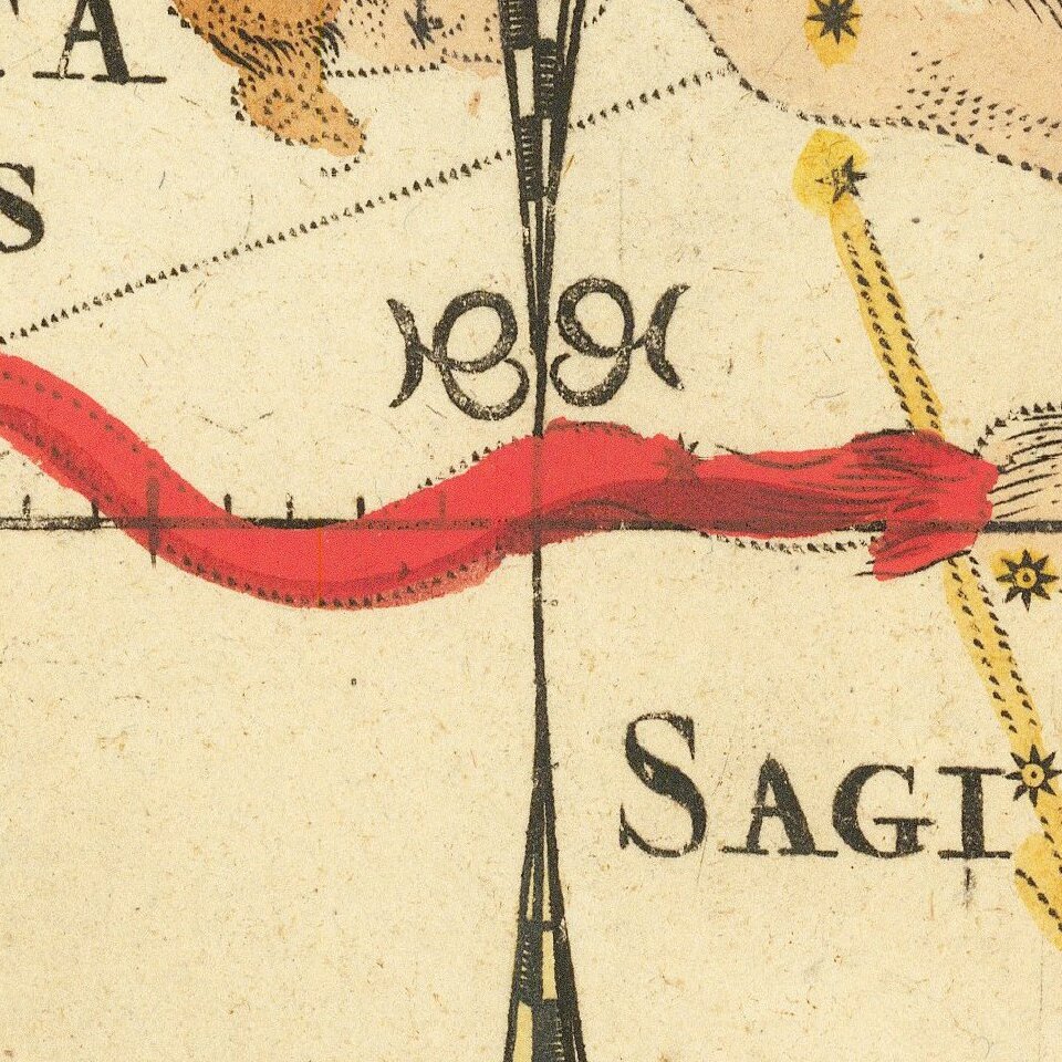 De Wit's illustration of the constellations is clearly derived from the celestial hemispheres appearing as supplementary material on Joan Blaeu's 1658 wall map of the world (Shirley 371).