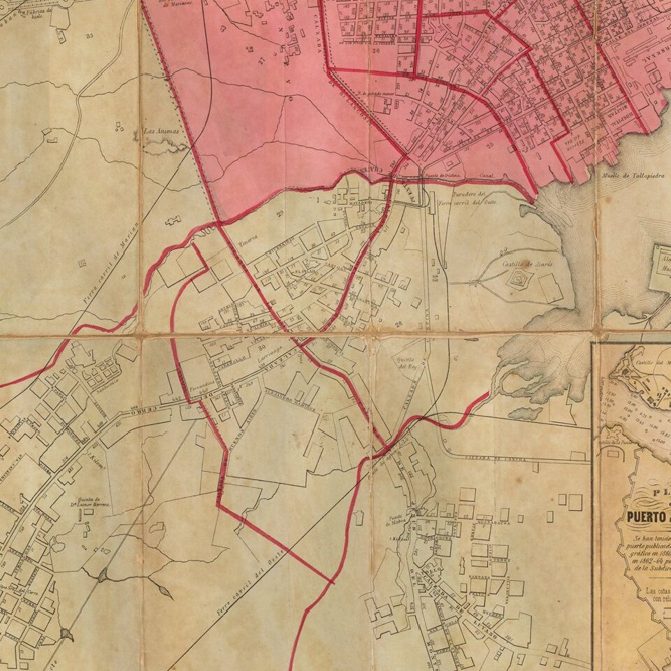 Rare, large-format, Havana-published lithographed folding map of Havana.