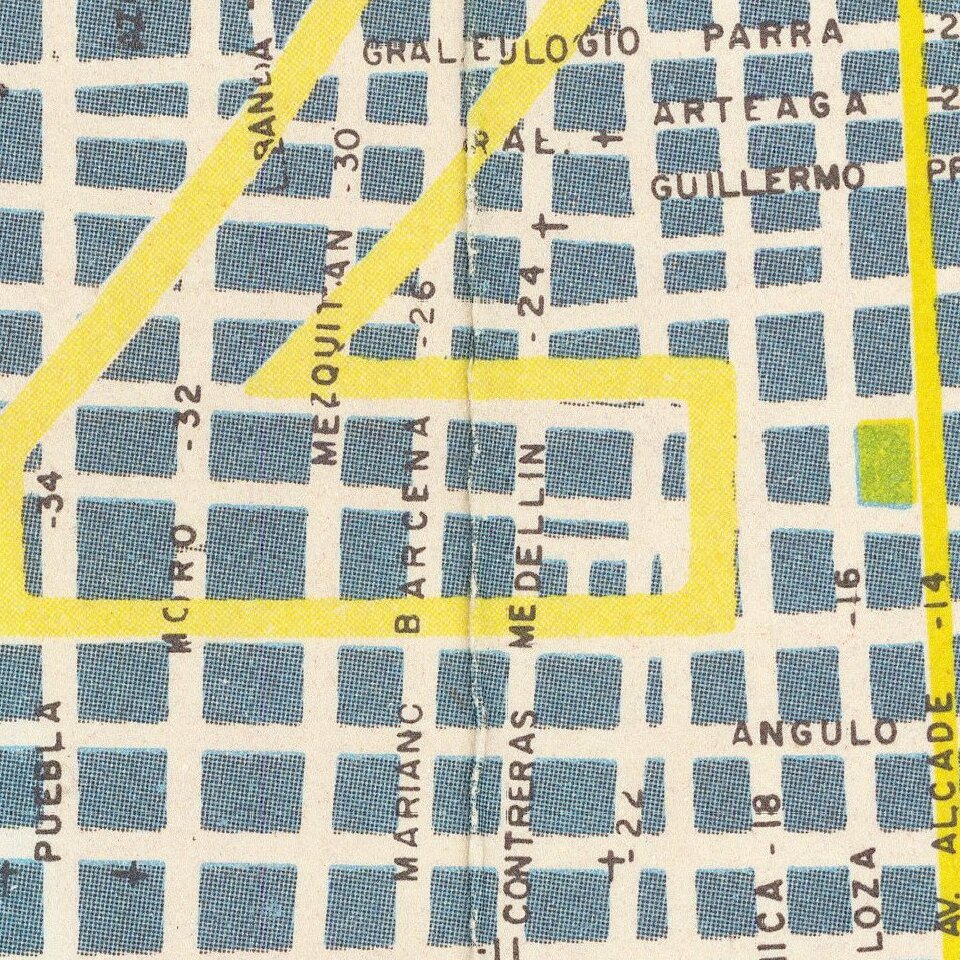 The map numbers the postal zones of the sprawling central Mexico metropolis. On the verso is some information aimed at tourists and shoppers, and a view of the city as it was in 1860.