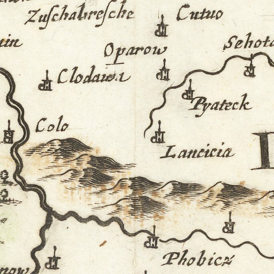 Fine example of De Wit's rare map of Poland and Silesia, extending north to the Baltic Sea.
