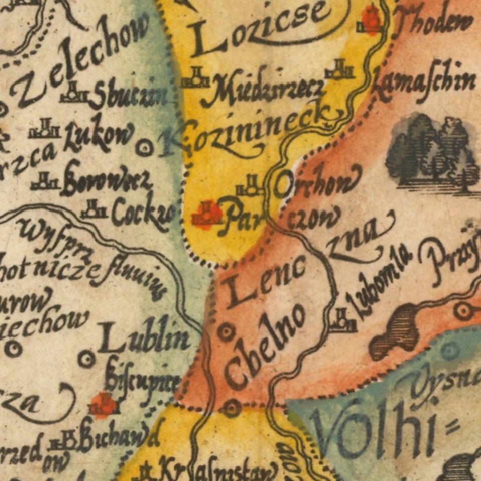 Striking example of Quad's map of Poland, reduced from Ortelius' map.