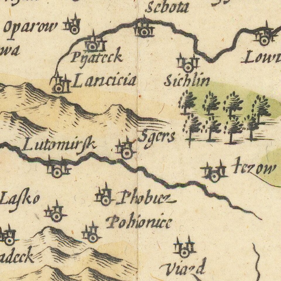 A scarce map of Poland extending from Stettin and Crossen to Cracow, to Lublin and Warsaw and north to the Baltic. Several imposing figures support the titlepiece topped by the crowned Imperial eagle of the Hapsburg dynasty.