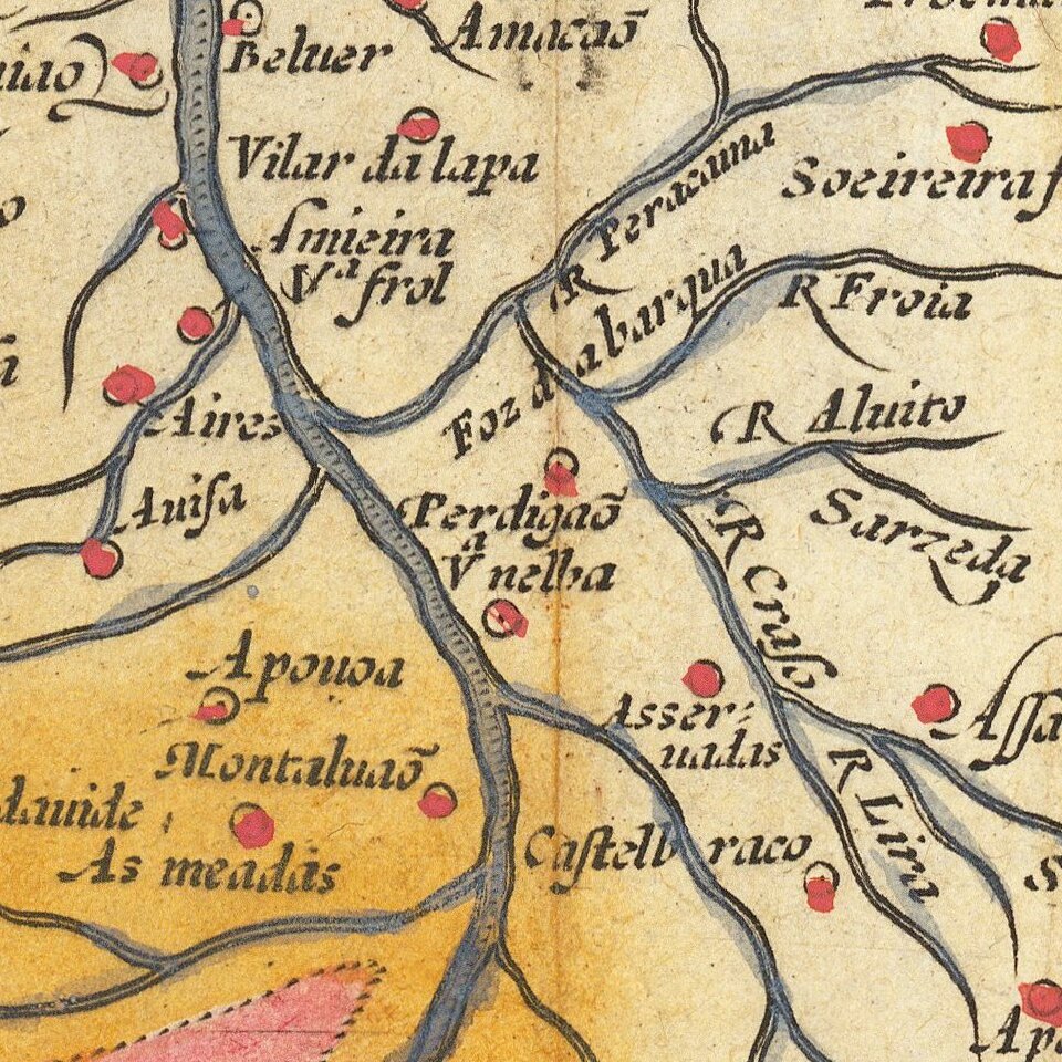 Based upon Fernando Alvarez Secco's two-sheet map of Portugal, engraved by Sebastiano de Re, and published by Achilles Statius (1524-1581), a Portuguese, at the publishing house of Michele Tramezzino in 1561.
