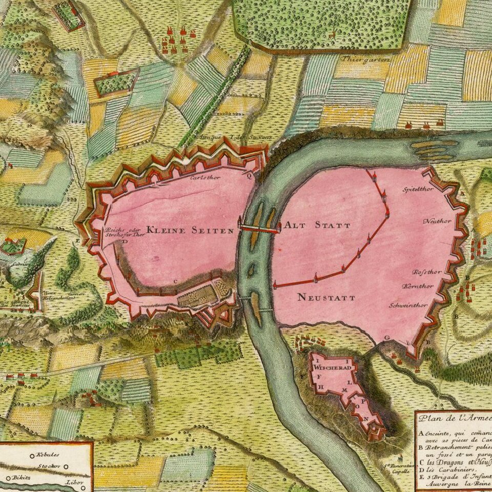 Plan of the fortifications of Prague, published by Homann Heirs in Nuremberg.