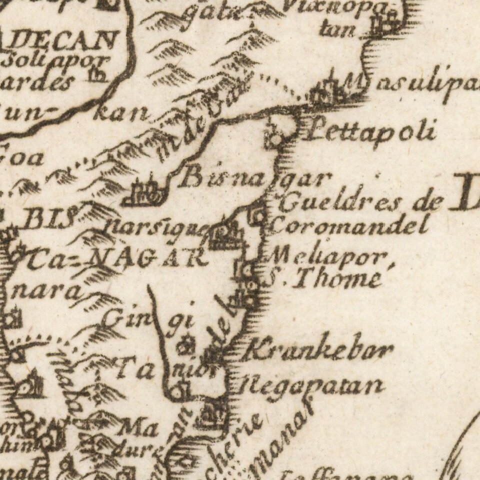 Detailed map of the southern part of India and Sri Lanka, published in Paris by Du Val.