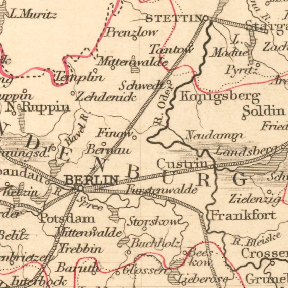 Includes decorative vignettes showing French Church Berlin, Frederick the Great, The Royal Palace, Berlin, and Bradenberg Gate.