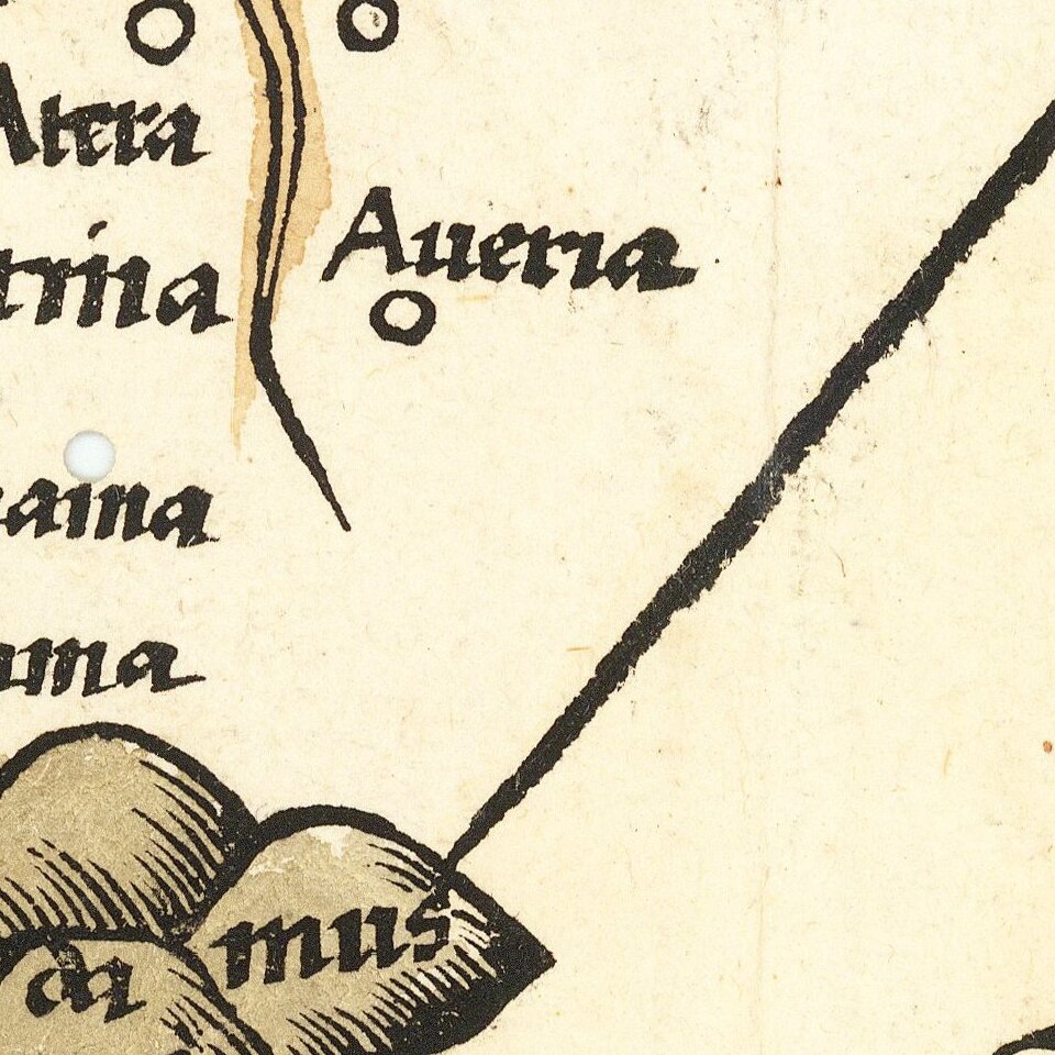 Waldseemüller followed this up with a magnificent edition of Ptolemy's Geographia, published in 1513 by Johann Schott in Strasbourg. In addition to a full suite of Ptolemaic maps, the work was supplemented with a number of new maps, including the famous 'Admiral's Map', which depicted the Atlantic Ocean and the Americas. All of its maps, including the present map, were printed from beautifully carved woodblocks made of pear wood.