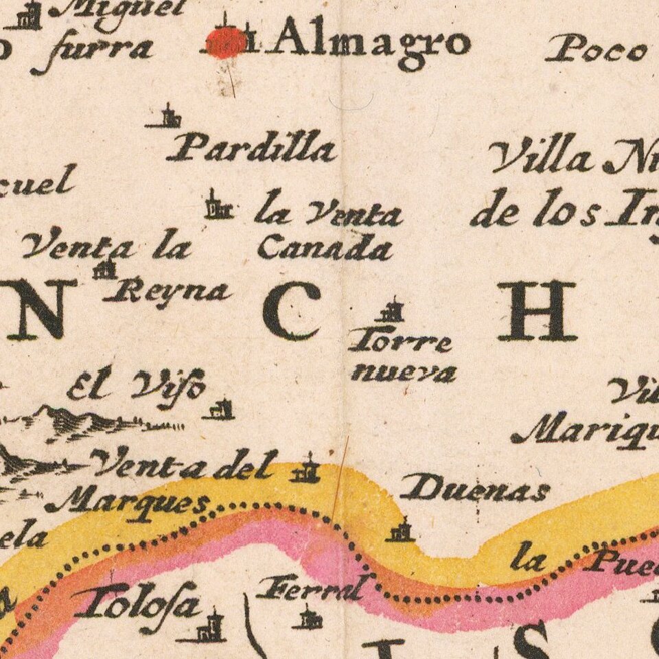 Decorative and highly detailed map of Southern Spain, extending from Salamanca and Segovia in the North, to the Gulfs of Valentia, Alicante and Cartgena in the east, the Straits of Gibralter in the South, and Portalegre, Alcantara and Merida in the west.