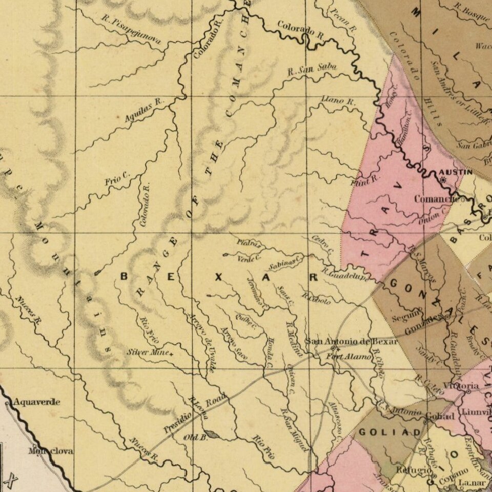 The present example is the rare first state of Tanner's 1845 map of the Republic, pre-dating, the addition of a number of Texas Counties formed in 1845 and 18465.
