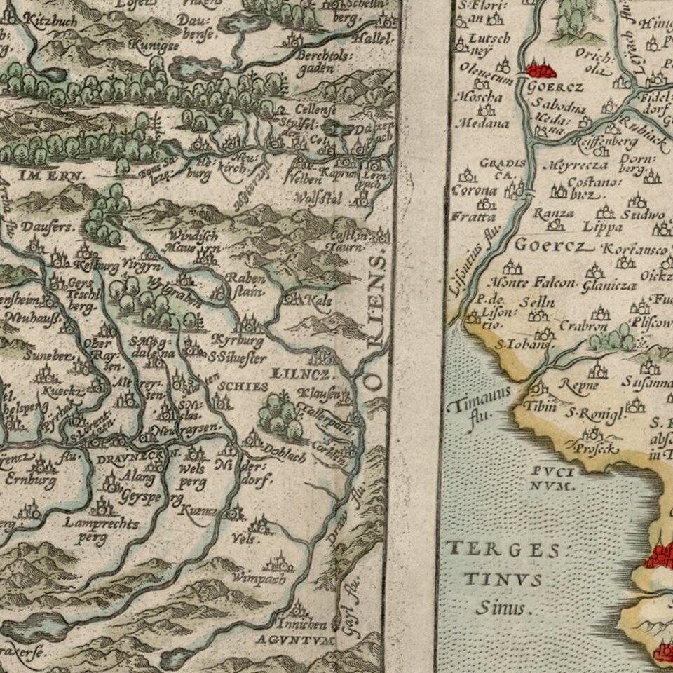 The Tirolian map extends from Mantua, Verona and Vincenza to Furstenfeld, Mildorf and Wasserburg and is centered on Innsburck. Salzburg also appears. The second map extends from the Islands of Cigola and Osero to the Savus River. Nice dark impression and wide margins. From the 1587 French edition of Ortelius' Theatrum Orbis Terrarum, the first modern Atlas.