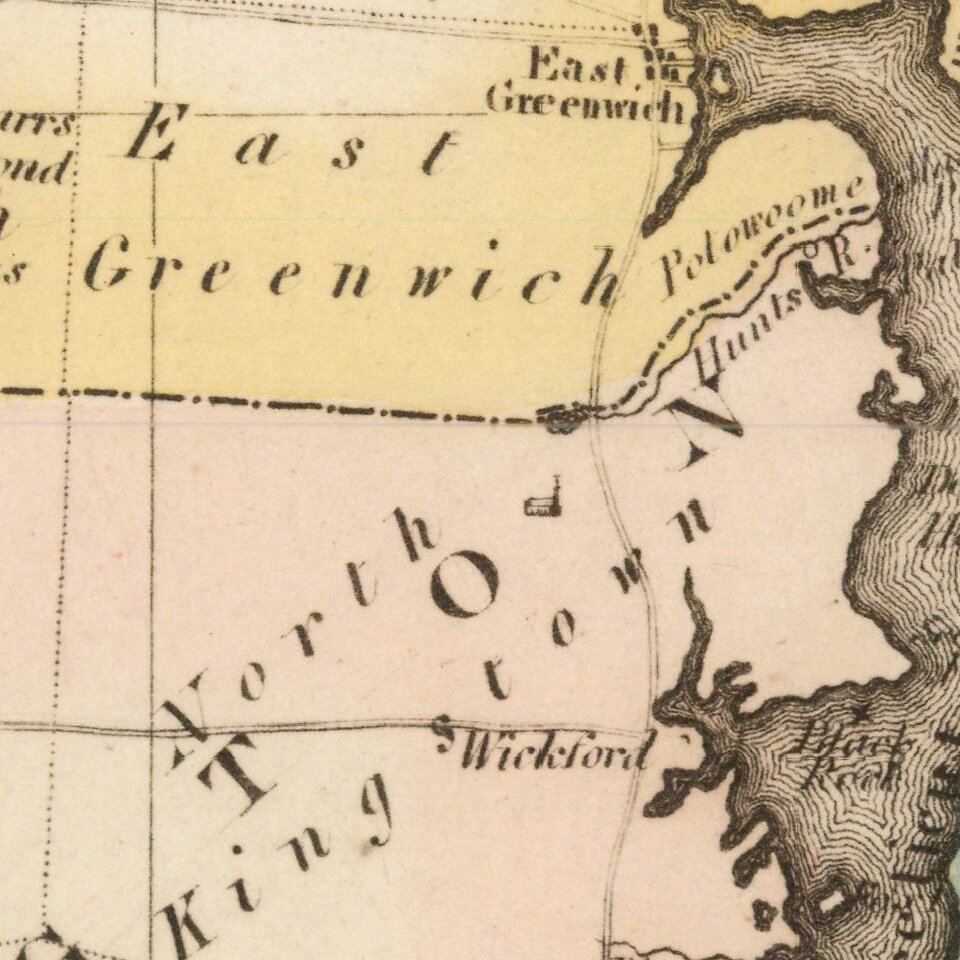 Rare map of Rhode Island, hand colored by counties and showing townships.