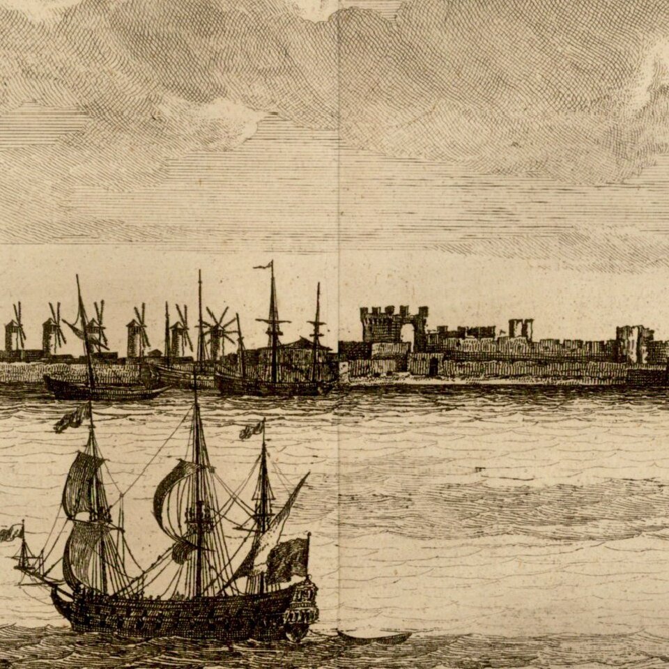 Striking view of the island of Rhodes, from De Bruyn's Reizen van Cornelis de Bruyn . . . .