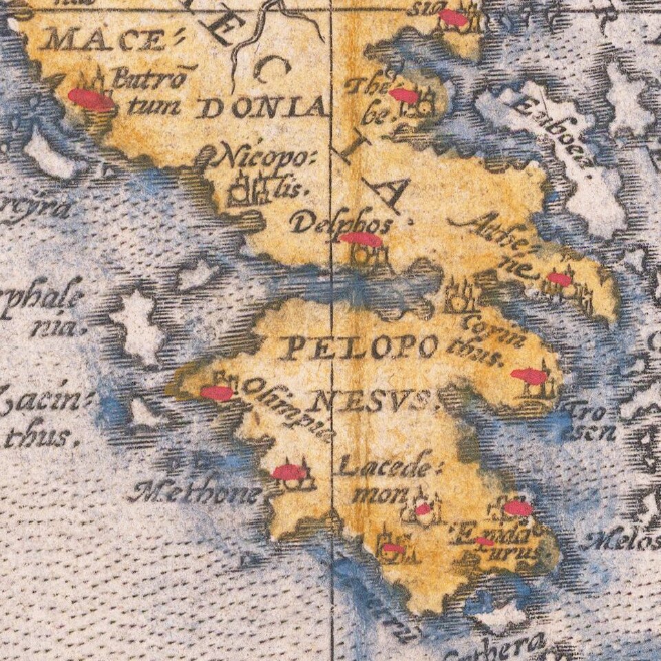 Old color map of the Roman Empire from Abraham Ortelius' Theatrum Orbis Terrarum, the first modern atlas of the world.