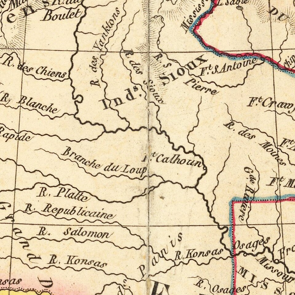 Excellent map of North America and the West Indies. Beautifully engraved on fine heavy paper with the embossed atlas seal of the publisher below the script title. Alaska is named as Amerique Russe and is still a bit mis-shapen, with a blue dot at Point Bodega, showing the location of the Russian Fort Ross.