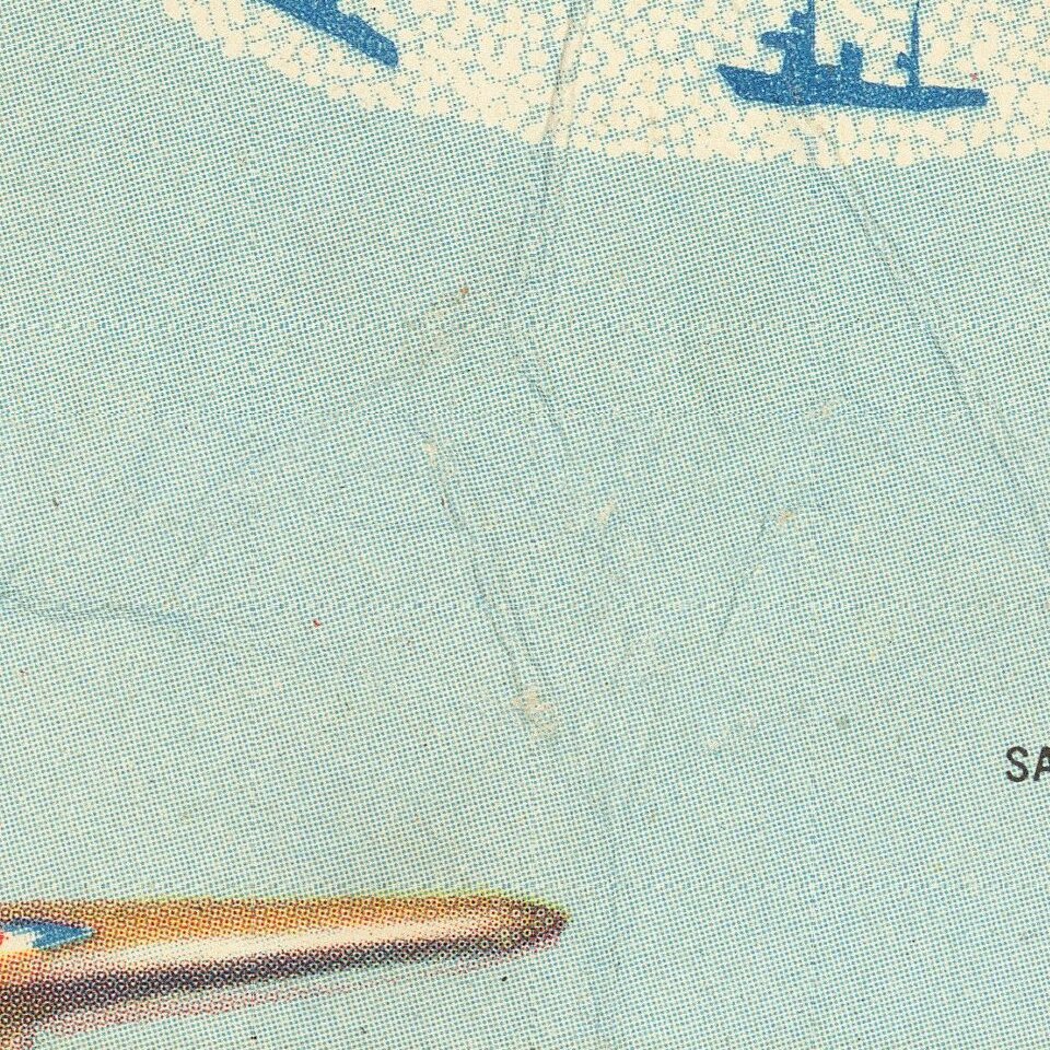 The map was created by Lambert Guenther to glorify the power and international reach of the United States military. The protective boundary of the air and sea forces are shown surrounding the United States, while the US military bases and British naval bases are identified throughout the world. By presenting the map on a Mercator projection, the US appears to be protected from its enemies by vast oceans, a myth that would be shattered months later with the surprise attack on Pearl Harbor.