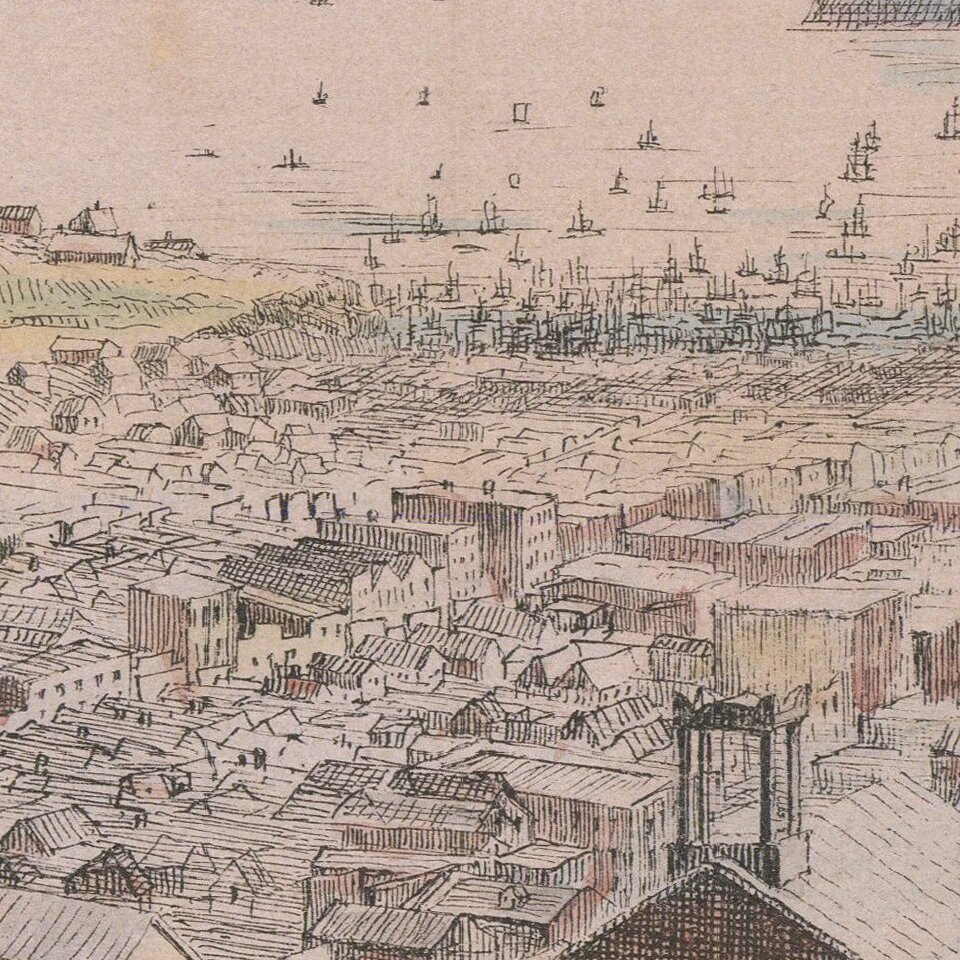 The view was originally issued as the top portion of a larger lettersheet, intended as stationary. The size is noteworthy, as most lettersheets were approximately 8.5 x 11 inches.