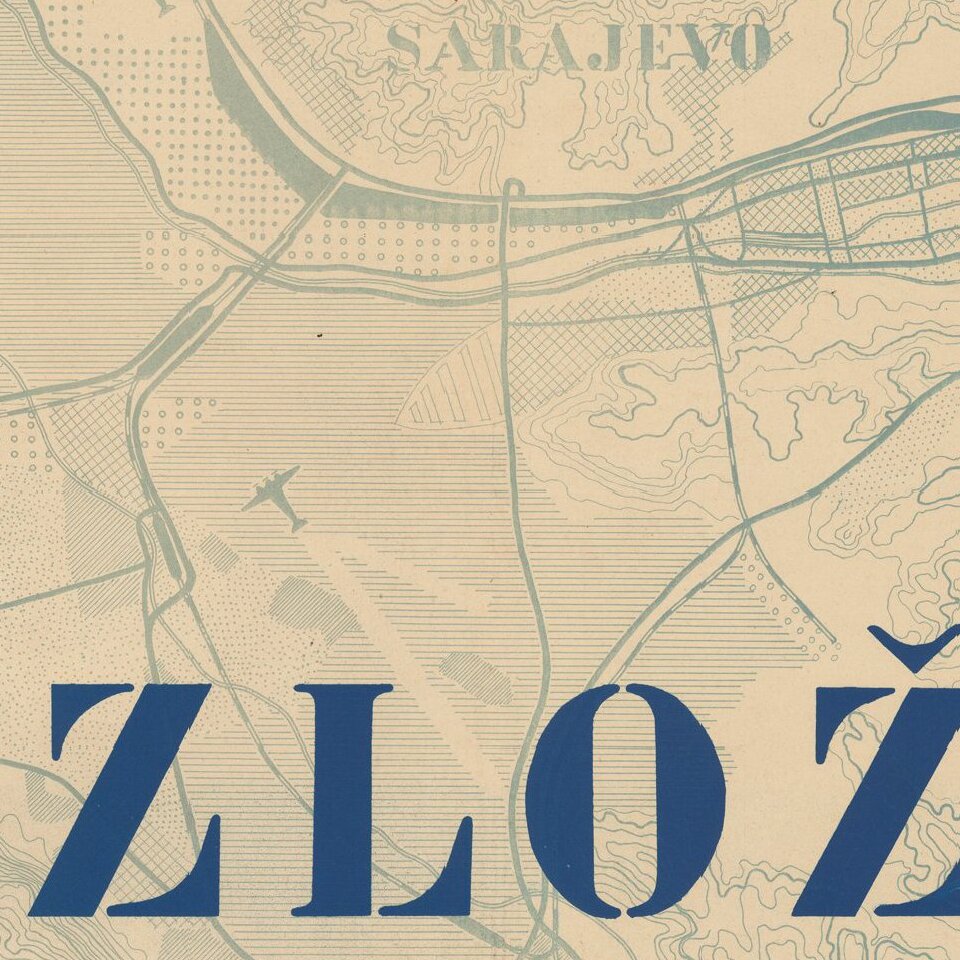 Decorative poster-map of Sarajevo, Bosnia, made at the end of World War II in order to advertise and promote local industry.