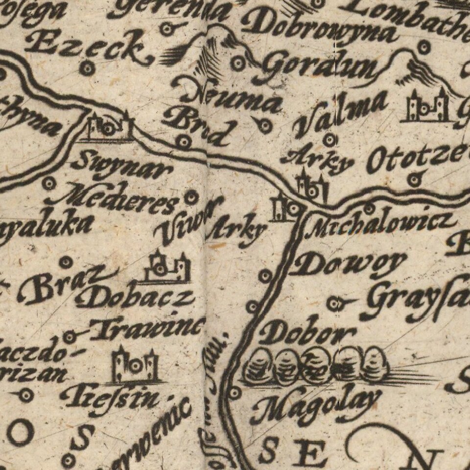 Matthias Quad (1557-1613), a map publisher based in Cologne, was trained in the Netherlands by Johannes van Doetecum, who also worked with the De Jodes. Quad used many De Jode maps as a base to which he added additional information and decorations. Quad was best known for his atlases, which were part of the first boom in atlases best characterized by Abraham Ortelius’ Theatrum Orbis Terrarum. In 1592, Quad released an atlas of Europe that had 38 maps. He expanded it in 1594 to 50 maps. In 1600, he expanded the collection of maps further still, this time to 82 maps, and called the atlas, Geographisch Handtbuch. All three were small in size, allowing them to compete as cheaper alternatives to the larger atlases of Ortelius, Mercator, and the De Jodes. Quad released one other atlas, in 1608, with 86 maps, the Fascilus Geographicus.