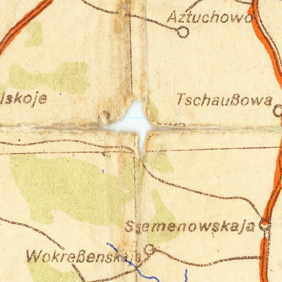 Rare German plan of military positions and strategic landmarks between Kaluga and Moscow, published on the 8th of October, 1941, during the Battle of Moscow.