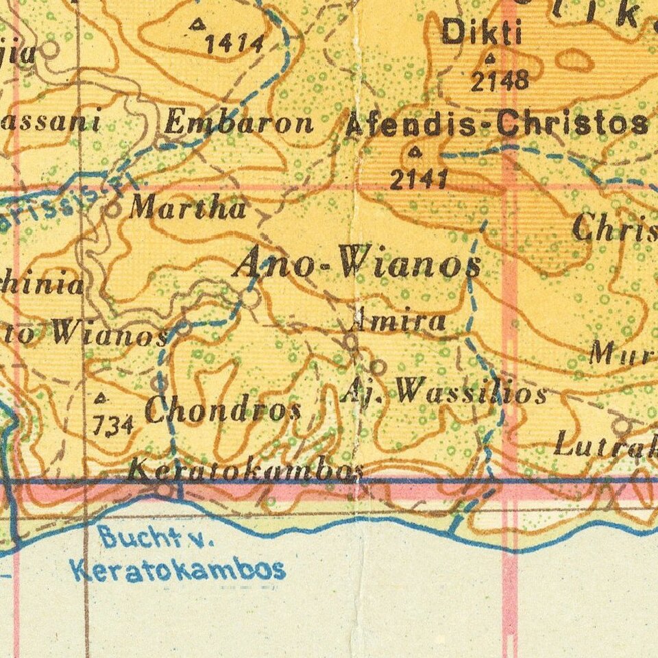 World War II-era German Army map of Crete, published shortly before the liberation of Crete from Germany occupation in October of 1944.