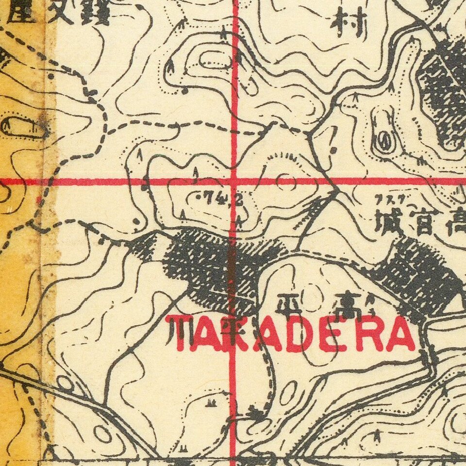 An interesting product of wartime necessity, this map was photo-reproduced from a Japanese-language military map of the island that had probably been captured during the invasion. The map was then overprinted with a coordinate grid and translations of the names of the Okinawan villages.