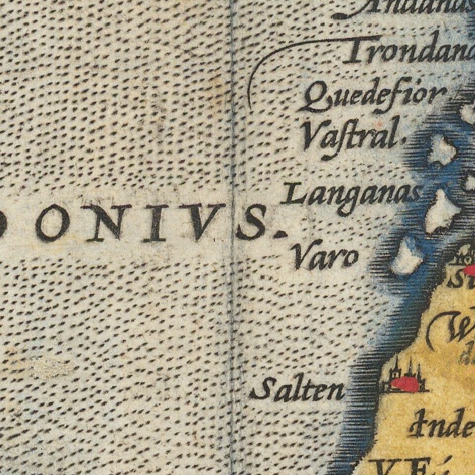 Engraved by Frans Hogenberg, Ortelius' map of the North Atlantic is one of the most interesting maps to appear in an atlas. The map was influential in its treatment of the Arctic regions. The mainland of America is depicted in the north-west with the placename Estotilant. The map includes a number of mythical islands, including Frisland, Drogeo and Icaria. The map shows the influence of Mercator's wall map of 1569 and the infamous Zeno map of 1558, as well as the work of Olaus Magnus in 1539. Excellent early outline of the Scandinavian coast, bordering the Mare Congelatum, the frozen waters of the Arctic.