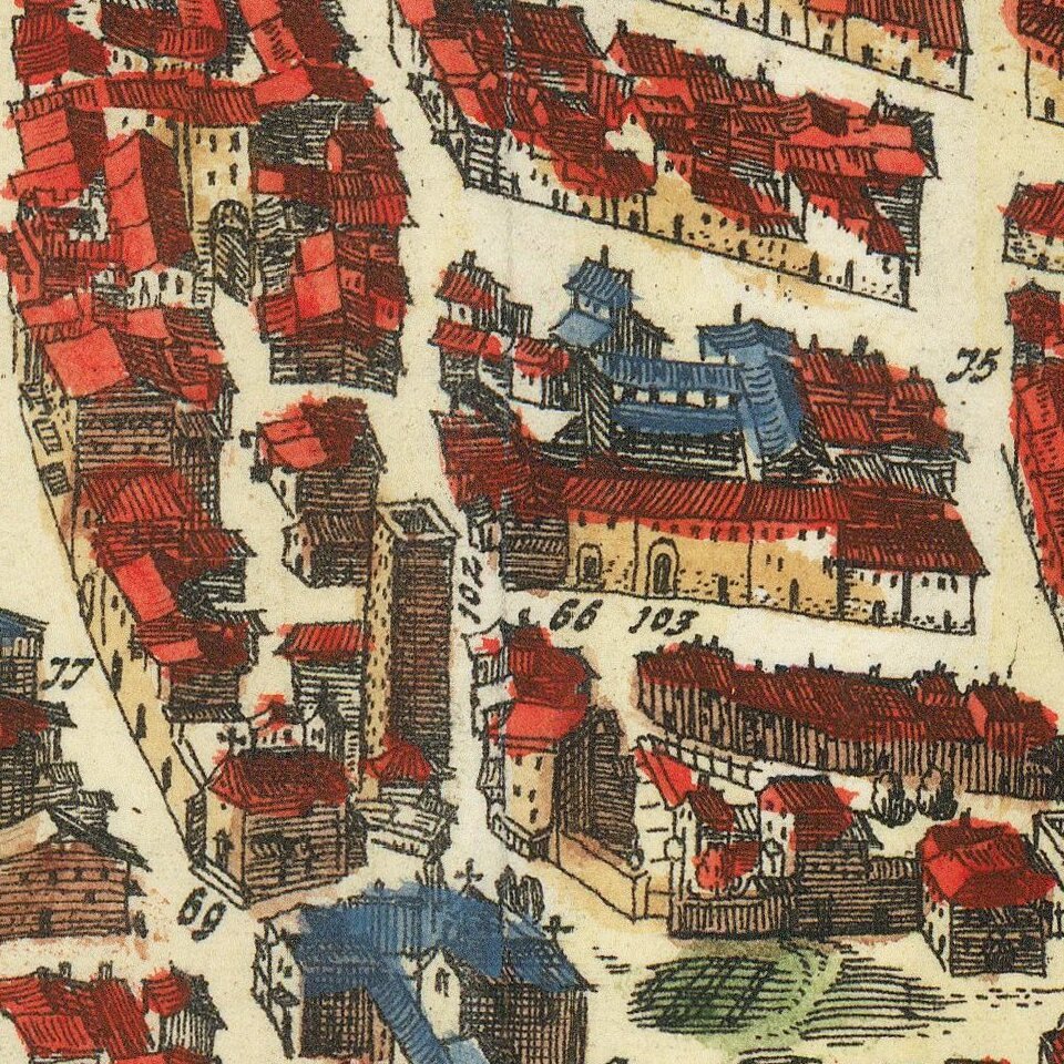 Mortier's work was primarily a re-issue of Blaeu's townbook of Italy. However, the Siena view is one of a number of new views added by Mortier which had not been a part of the original Blaeu townbook.