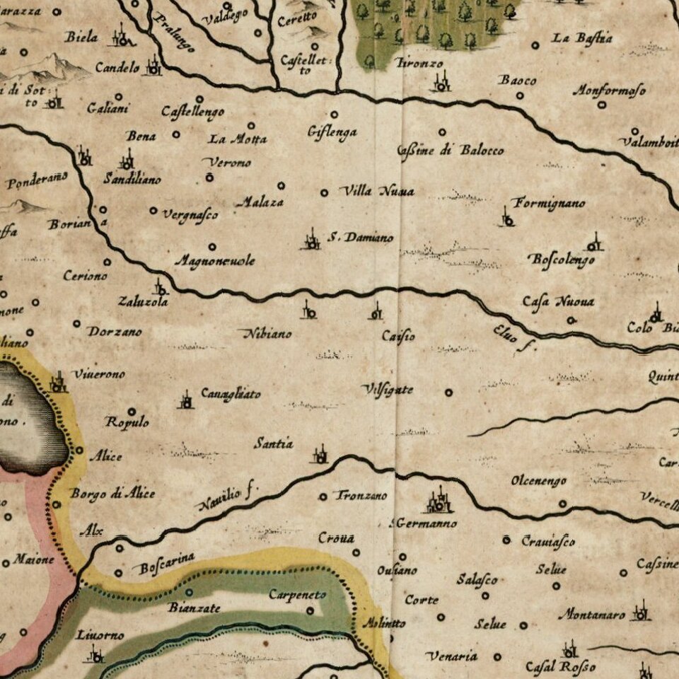 Nice old color example of Jansson's map of the Signory of Vercelli.