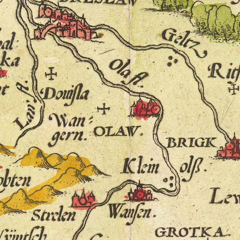 The map is based upon an extremely rare map by Martin Helwig (1516-1574). Helwig was a trained mathematician, classical linguist and geographer, who became the Rector of St. Maria Magdalena School in Breslau (now Wrocław, in Poland), in 1552. Helwig produced the first woodcut map of Silesia made on the basis of locally collected surveys and data which he published in 1561, under the title Silesiae Typus. Helwig dedicated the map to Nicolaus II. Rehdiger, a wealthy Silesian merchant, banker, philanthropist, governor and patron of the principality of Breslau (Wrocław), who sponsored the map. Martin Helwig's map went on to receive acclaim in a public writing by Caspar Peucer, an eminent German scholar at the University of Wittenberg, ultimately receiving the notice of Ortelius, who incorporated the map into the Theatrum.