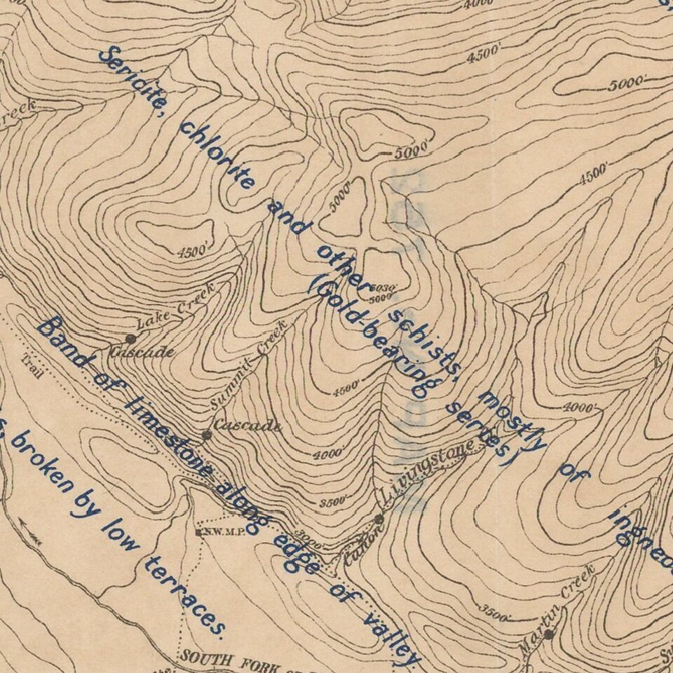 Detailed map of the Salmon River Gold Field, as surveyed by the Geological Survey of Canada.