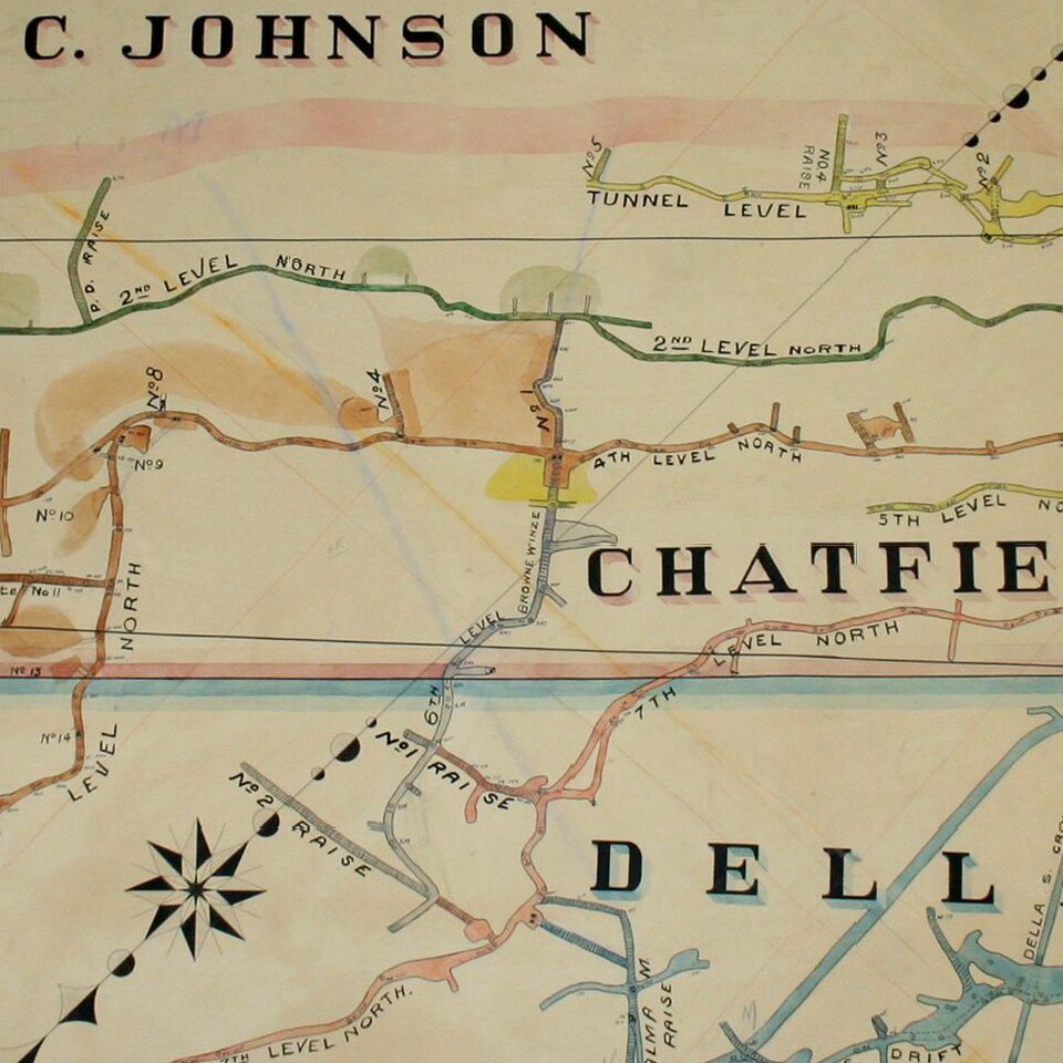 John C. Johnson, Appellant vs. The Standard Mining Company of Kansas City, Appellee CASE NO. 13709, THE SUPREME COURT OF THE UNITED STATES; October Term, 1892.The J.C. Johnson claim was staked out in the early 1880s, and by 1886 became one of the paying mines on Smuggler Mountain (Aspen Mining District, Pitkin County, Colorado), along with the Smuggler, Della S., Bushwhacker, Park-Regent, and Mineral Farm. The Della S. was a property owned by D.R.C. Brown. The Bushwhacker was purchased by Jerome B. Wheeler. The Chatfield claim, also staked out in the early 1880s, was contiguous to the J.C. Johnson; shared much of the same geologic formation, and some of the underground workings.
