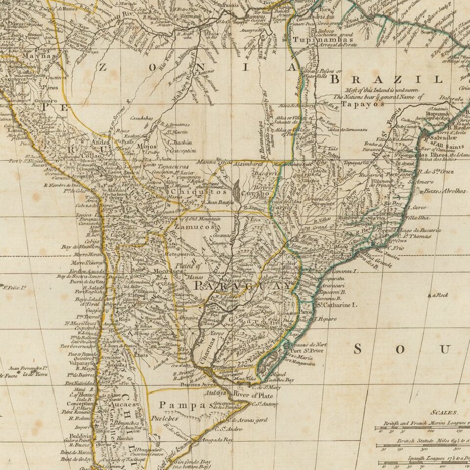 Detailed map of South America, drawn toward the end of Spain's colonial empire.