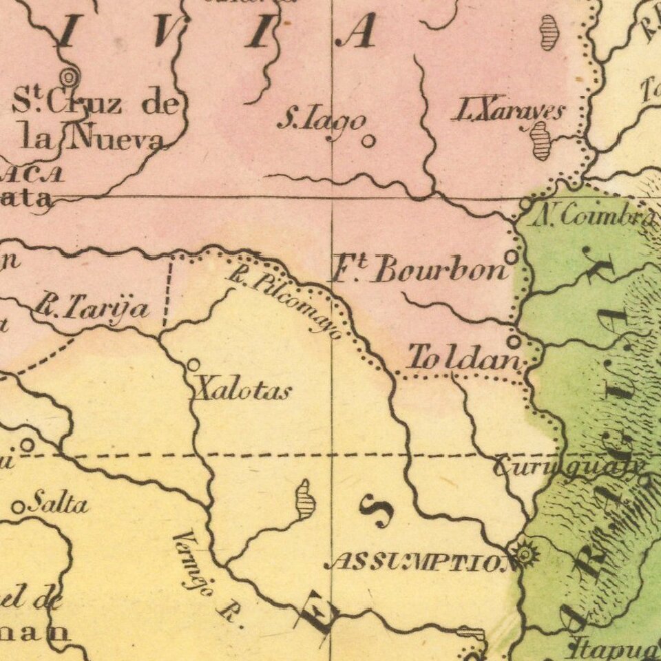 South America is depicted at the end of its Revolutionary Period, with the Spanish presence now ended. The territorial divisions include Columbia, Guiana, Portuguese Guiana extending nearly to the Pacific, Brazil, Bolivia, Peru, Paraguay, United Provinces, Chili and Patagonia. Ecuador, Venezuela and Uruguay are not yet created.