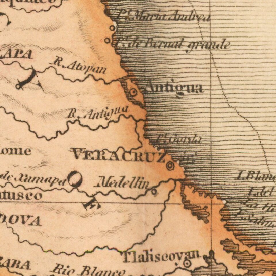 The topographical detail in Mexico is among the best to appear in a British Atlas. Pinkerton's now rare elephant folio atlas is one of the best engraved works of the period. While lesser known than the more common atlases by Cary & Thomson, it is a superior work, especially in the detail of the maps.