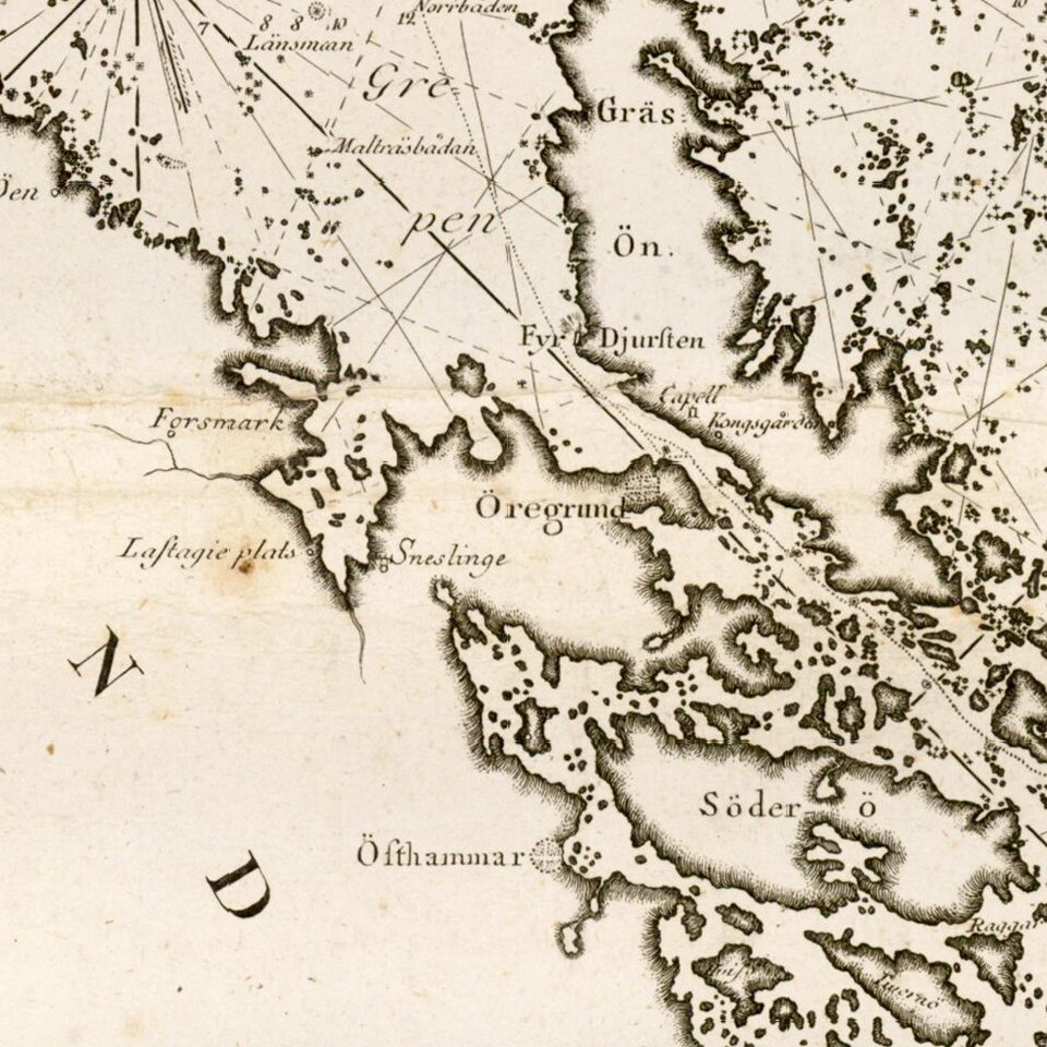 Fine regional Sea Chart of the Coast of Sweden from Soderhamn to Stockholm, published by Swedish Admiral Johann Nordenankar in his Sveriges Sjo-Atlas, the first modern sea atlas of the Baltic.