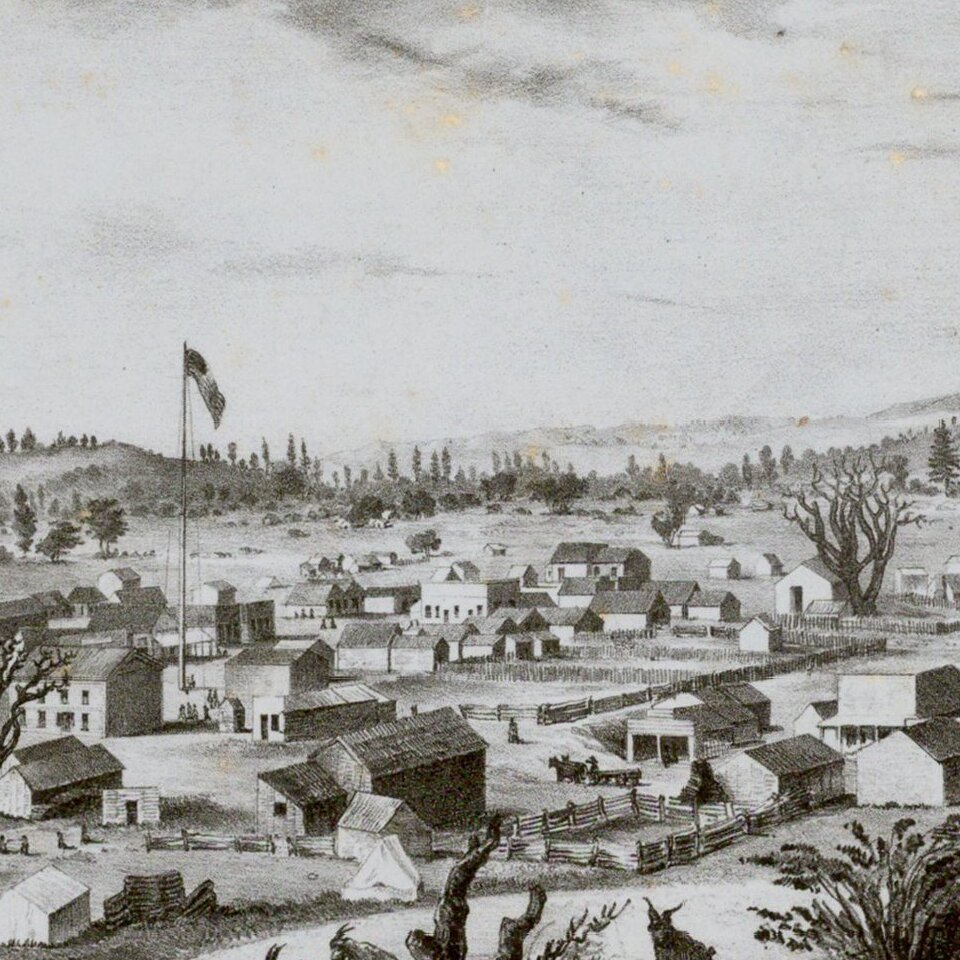 The view provides one of the earliest surviving images of this then important Gold Rush town and is very scarce on the market.