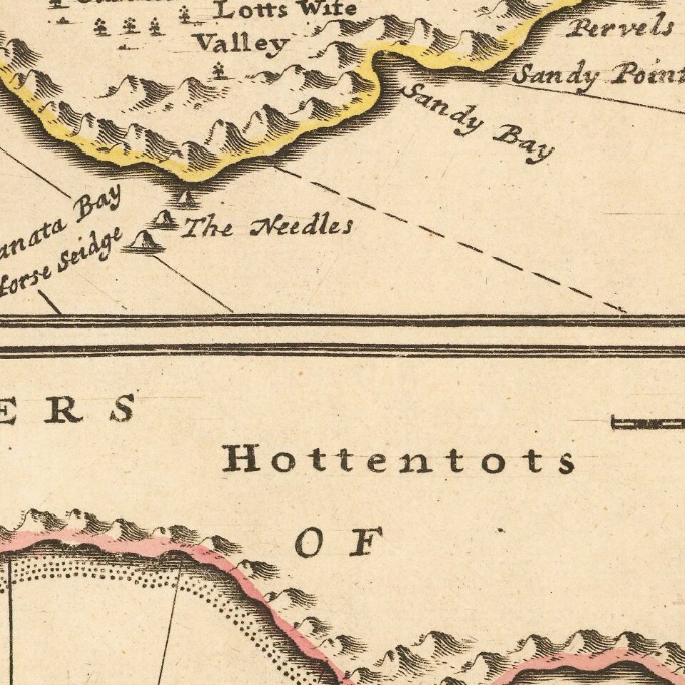 Over the course of his career, he published dozens of geographies, atlases, and histories, not to mention numerous sheet maps. His most famous works are Atlas Geographus, a monthly magazine that ran from 1708 to 1717, and The World Described (1715-54). He also frequently made maps for books, including those of Dampier’s publications and Swift’s Gulliver’s Travels. Moll died in 1732. It is likely that his plates passed to another contemporary, Thomas Bowles, after this death.