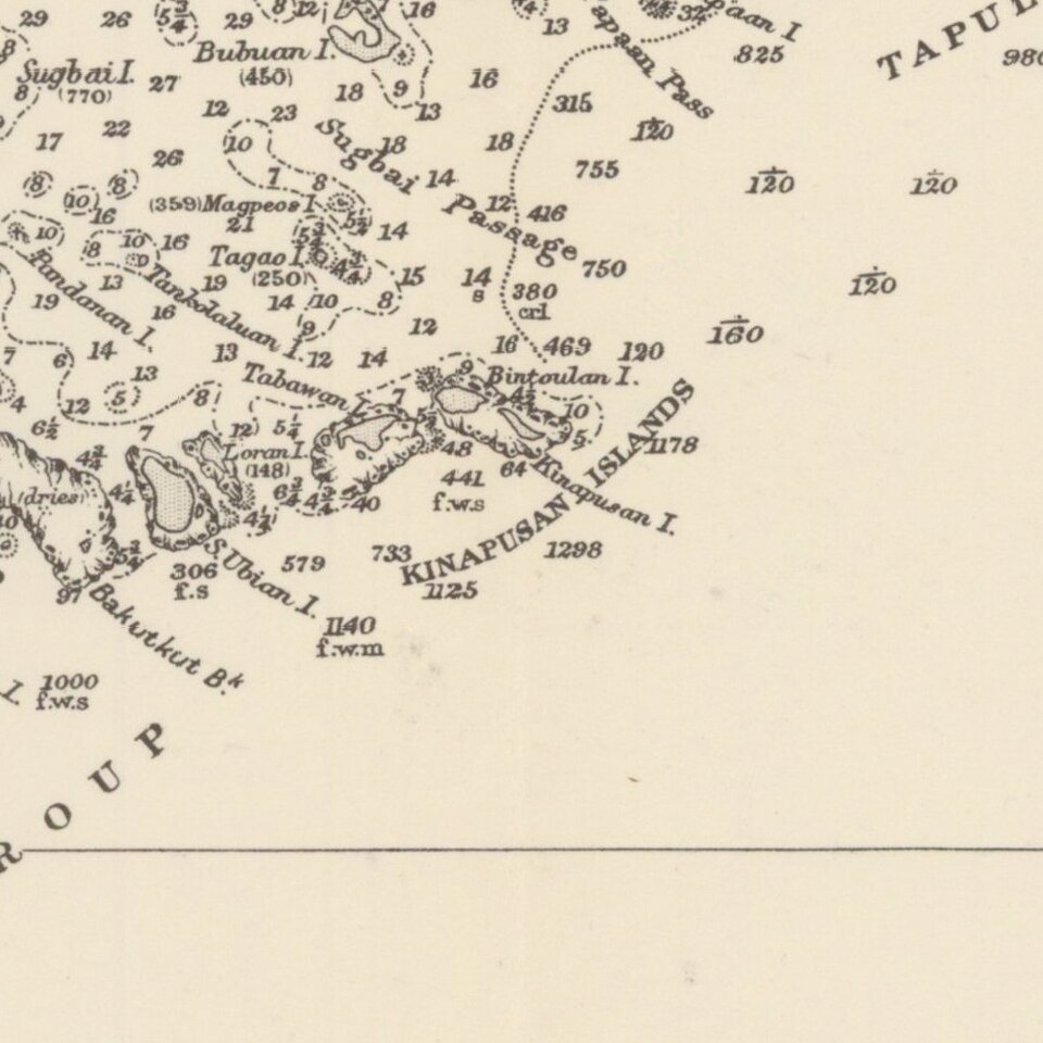 Detailed map of the Sulu Archipelago, with insets of Port Bongao, and the Tapul Group Entrance between Lapak and Siasi Islands,