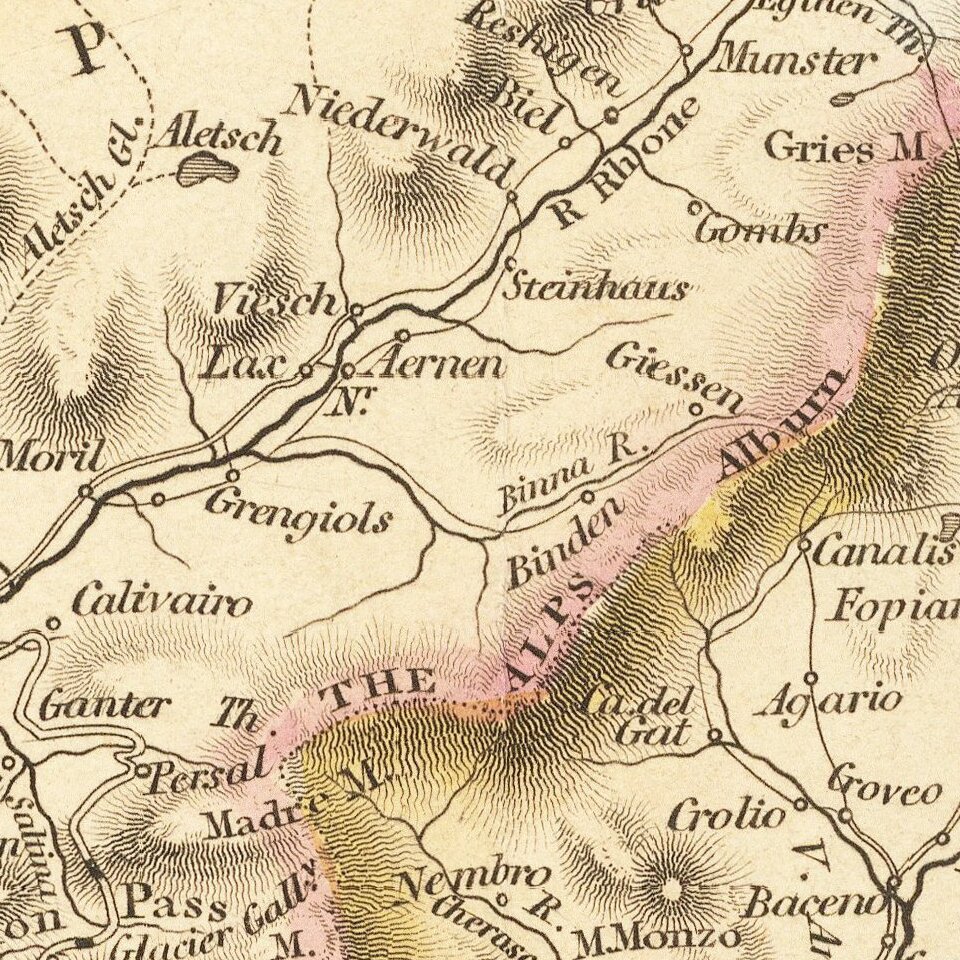 The map shows towns, roads, rivers, mountains, cantons and a host of other details.
