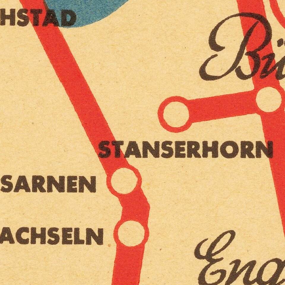 Rare separately published tourist map of Switzerland, published in Berne.