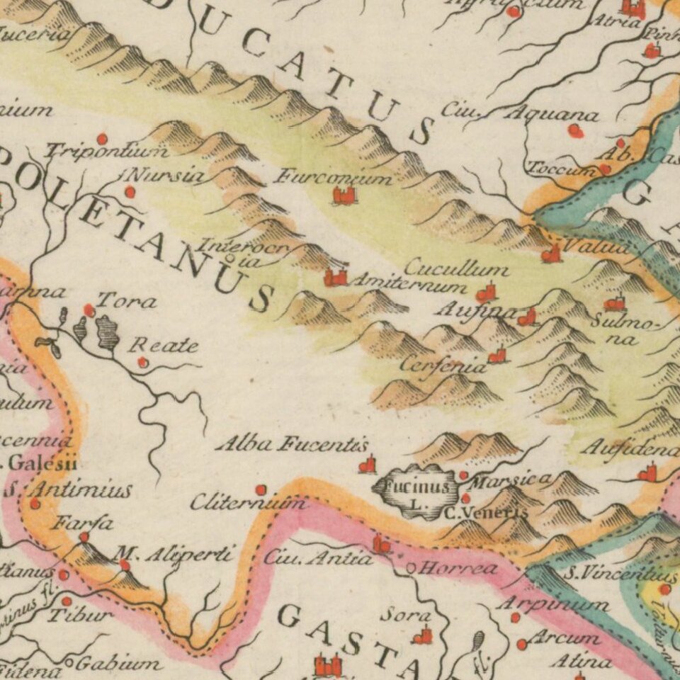 Rare map of Italy, pubished in Venice by Giovanni Giacomo Spinelli, engraved by Angela Varoni.