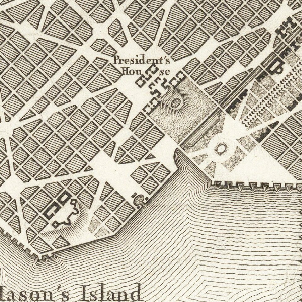 The map is apparently derived from Andrew Ellicott's Territory of Columbia, published by Thackara & Vallance in 1794. Referred to as The 10 Mile Square, the area was surveyed by Ellicott, who subsequently drew 2 manuscript plans at the request of Thomas Jefferson in 1793. The Territory consisted of 64 square miles ceded by Maryland in 1788 and 36 square miles ceded by Virginia in 1789. While several other topographical manuscript maps were drawn shortly thereafter, the entirety of the Territory of Columbia was largely ignored in printed maps following the Thackera & Vallance map of 1794, making this work by Tardieu one of the earliest depictions of the entire Territory of Columbia and one of the very few maps to refer to the region as a Territory (as opposed to a District).